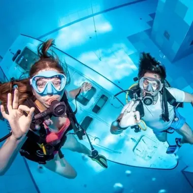 Deepspot to także świetne miejsce dla rodzin, grup znajomych i osób szukających niebanalnych aktywności. Możesz tu zanurzyć się po raz pierwszy – dzięki specjalnym sesjom INTRO, które pokażą Ci magię nurkowania w kontrolowanych warunkach.